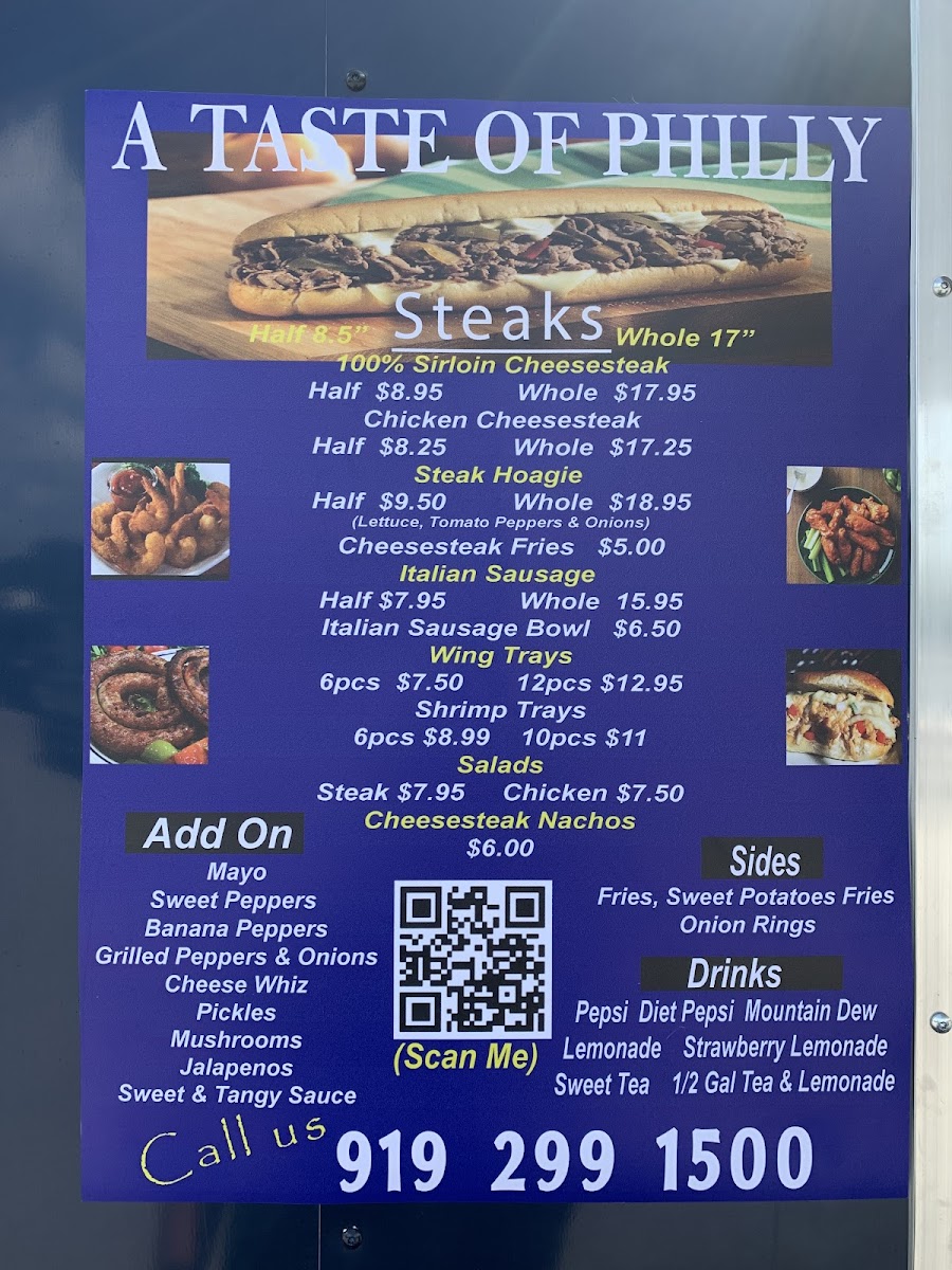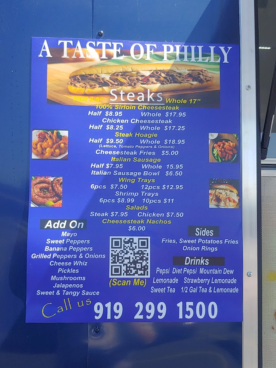 From a reviewer’s perspective, the menu at A Taste Of Philly 4 U offers a satisfying variety of comfort foods with plenty of hearty options to choose from. The Slam Burgers and Slamdogs section includes favorites like the Chicken Slam, Hot Dog, Slam Burger, and Chicago Beef Frank, while the Wings and Tenders section keeps it classic with Tenders and Wings. For cheesy indulgences, items such as Cheesy Fries, Cheesesteak Fries, and Chicken Fries stand out. Lighter options are available with Salad and Wraps, and the drink selection includes Tea, Lemonade, 1/2 Gal Soda, and Btl Water. Seafood lovers can enjoy the Shrimp Plate, Shrimp Hoagie, Fish & Shrimp, Fish Only, and Fish Sandwich. The kids menu features Kids Hot Dog, 4" Philly, and Kids Tenders, while sides like Dipping Sauce, Sweet Potato Fries, Onion Rings, Okra, and Grits complement any meal. To finish, there’s Cheesecake for dessert. Featured and specialty items such as Italian Sausage, Italian Sausage Bowl, Tenders Salads, Cheesesteak Nachos, Chix Cheesesteak Nachos, Cheesesteak (Half), Italian Sausage (Half), Italian Sausage (Whole), Uptown Steak (Whole), and Panini Cheesesteak round out a menu that focuses on classic Philly-style comfort food with plenty of variety.